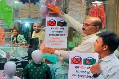 बताया गया है कि चीन और बांग्लादेश से बड़े पैमाने पर कपड़ा आता है, जिसका अब बहिष्कार (Boycott of China Bangladesh in MP) किया जाएगा। सुभाष चौक मंदिर में भगवान हनुमान को साक्षी मानकर 600 से अधिक व्यापारियों ने इस संकल्प पर सहमति दी है। इस दौरान एसोसिएशन के अध्यक्ष अक्षय जैन, राजेश जैन, पवन पंवार, पप्पी विल्सन, मिलन जैन, दीपक पंवार, चेतन डेमला, रूपेश गुप्ता, मोहन पोरवाल, सचिन सुराणा, शैलेंद्र दुबे, अंशुल मांडलिक सहित बड़ी संया में व्यापारी मौजूद थे। इस सामूहिक फैसले को लेकर सभी दुकानों पर पोस्टर लगाए गए हैं। इनमें लिखा है कि हम चीन और बांग्लादेश के कपड़े नहीं बेचेंगे। पोस्टर के साथ व्यापारियों ने प्रदर्शन भी किया।