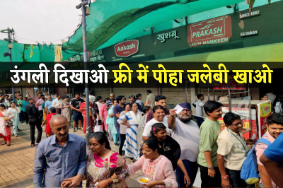56 Dukan Unique Initiative to increase voting percentage : वोटिंग परसेंट में इंदौर को नंबर 1 बनाने के लिए 56 दुकान संघ की अनोखी पहल। सुबह 7 बजे से 9 बजे के बीच मतदाताओं को फ्री में बांटा गया पोहा जलेबी। वोट डालने के बाद यहां उमड़ी लोगों की भीड़। उंगली दिखाकर फ्री में पोहा-जलेबी का स्वाद लेते नजर आए शरवासी।