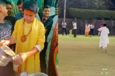 पंडित धीरेंद्र शास्त्री इन दिनों इंदौर में ही हैं जहां उनकी कथा चल रही है। कथा से फुर्सत मिलते ही पंडित शास्त्री यूं ही टहलने निकल रहे हैं। कभी क्रिकेट खेल रहे हैं तो कभी गन्ने का जूस निकालकर पिला रहे हैं। इंदौर में उनका एक वीडियो वायरल हुआ है जिसमें पंडित शास्त्री क्रिकेट खेलते दिख Pandit Dhirendra Shastri of Bageshwar Dham became cricketer रहे हैं। वीडियो में पंडित धीरेंद्र शास्त्री गेंदबाजी करते दिख रहे हैं। उन्होंने बाकायदा रन अप लिया और तेज गेंद डालते हुए बेटर को छका भी दिया।