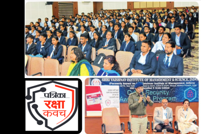 patrika raksha kavach: साइबर क्राइम के खिलाफ 'पत्रिका रक्षा कवच' अभियान के तहत श्री वैष्णव इंस्टिट्यूट ऑफ मैनेजमेंट एंड साइंस कॉलेज में जागरुकता सेमिनार में एडिशनल डीसीपी राजेश दंडोतिया ने विद्यार्थियों को ठगी से बचने की सीख दी।