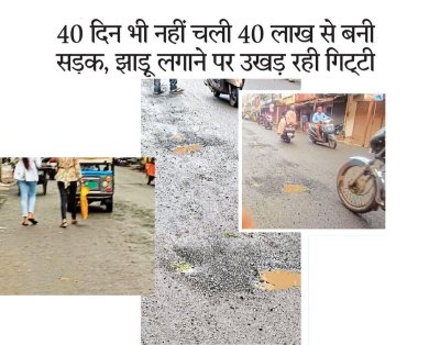 सडक़ किनारे लगे बैनर पोस्टरों से पता चल रहा है कि यह सडक़ 40 लाख रुपए की लागत से बनाई गई है। स्थानीय लोगों ने बताया कि भूमिपूजन के बाद नगर निगम के इंजीनियरिंग के धुरंधरों ने सडक़ को मात्रा दो दिन में ही बना दिया था। दो दिन में बनी सडक़ की पोल तीस दिन में खुला गई।