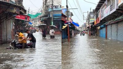 इधर, करौली में पांचना बांध से 4 गेटों से पानी की निकासी जारी रही। इससे गंभीर नदी में पानी का तेज बहाव रही। सोमवार सुबह 55 मिमी बारिश होने से बाजार व कॉलोनियों में जल स्तर 3 से 4 फीट हो गया। जिले के प्रभारी सचिव आशुतोष एटी पेडणेकर व जिला कलक्टर नीलाभ सक्सेना ने प्रशासनिक अमले के साथ शहर में जलभराव प्रभावित क्षेत्र का दौरा किया।