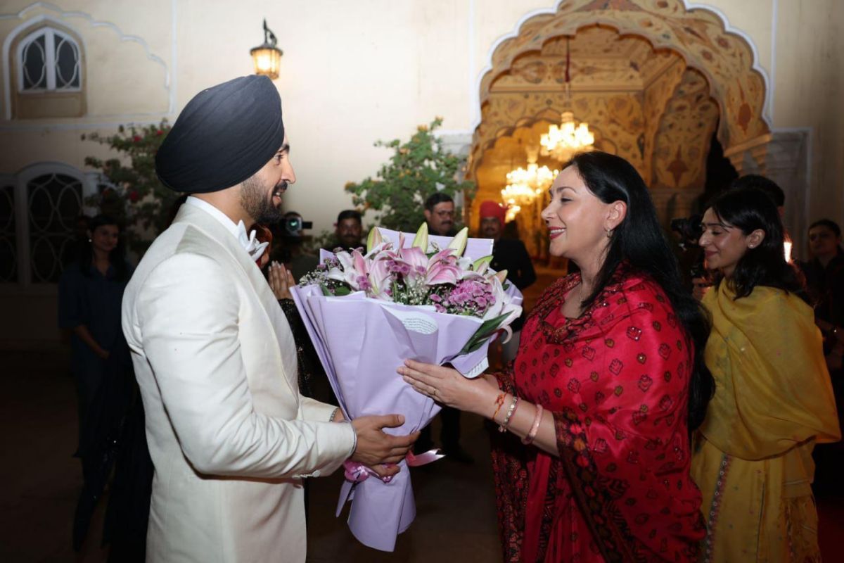 सिंगर दिलजीत दोसांझ ने एक विडियो शेयर किया है इसमें जयपुर की राजकुमारी और डिप्टी CM दीया कुमारी ने सिंगर दिलजीत दोसांझ का राजस्थान शाही अंदाज में माथे पर तिलक लगाकर स्वागत किया। जैसे ही सिंगर ने जयपुर सिटी पैलेस में प्रवेश किया फूलों की बारिश की गई।