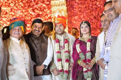 राजस्थान के राज्यपाल हरिभाऊ बागड़े, सीएम भजनलाल शर्मा, स्पीकर वासुदेव देवनानी, पूर्व मुख्यमंत्री वसुंधरा राजे, डिप्टी सीएम दीया कुमारी, डिप्टी सीएम प्रेमचंद बैरवा सहित कई नेतागण विवाह समारोह में शामिल हुए।