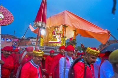 तीज माता को चांदी की पालकी में सावधानीपूर्वक निकाला गया, जबकि उन्हें बारिश से बचाने के पूरे इंतजाम किए गए। (फोटो: अनुग्रह सोलोमन पत्रिका)