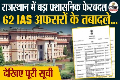 Rajasthan IAS Transfer: राज्य सरकार ने रविवार देर रात नौकरशाही में बड़ा फेरबदल कर भारतीय प्रशासनिक सेवा के 62 अधिकारियों का तबादला कर दिया।