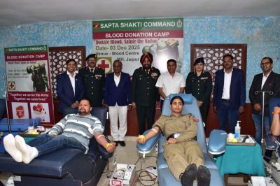 जयपुर। आर्मी डे के उपलक्ष में सप्त शक्ति कमान द्वारा बुधवार को मिलिट्री अस्पताल में रक्तदान शिविर का आयोजन किया गया। ‘डोनेट ब्लड, सैल्यूट द नेशन’ थीम पर आयोजित इस शिविर में सेना के जवानों, एनसीसी कैडेट्स और नागरिकों ने उत्साहपूर्वक भाग लेते हुए कुल 136 यूनिट रक्त दान किया।