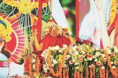 कथा के बीच में रामभद्राचार्य ने कहा कि मैं कठोर कहने में बदनाम हूं। किसी भी संत को निराश होने की आवश्यकता नहीं है। इस बार कुंभ में हम कुछ ऐसा करेंगे कि विश्व के नक्शे से पाकिस्तान का नामो-निशान मिट जाएगा। यह देश गांधी परिवार का नहीं है। यह राष्ट्र हमारा है। सनातनियों का है, विधर्मियों का नहीं है। चित्रकूट धाम में छह दिसंबर को संस्कृत विश्वविद्यालय की स्थापना करूंगा। सभी को आकर देखना चाहिए की देश की संस्कृति कैसे स्थापित की जाती है। देश में गो हत्या बंद करवा कर रहेंगे। हिंदी को राष्ट्र भाषा बनाएंगे। अब हम सत्ता परिवर्तन नहीं चाहते। स्वामी ने कहा कि 21 साल बाद जयपुर आया हूं। यहां से अलग लगाव है। अब हर साल जयपुर आउंगा।