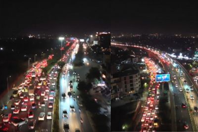 ड्रोन से लिया गया एरियल व्यू दिखाता है कि वीडियो में गाड़ियां रेंगती हुई नजर आ रही हैं। वाहन चालकों को कई घंटों तक सड़क पर ही इंतजार करने को मजबूर होना पड़ा।