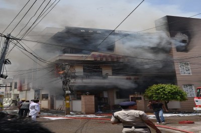 तीन मंजिला इमारत में आग लगने का मामला सामने आया है।
