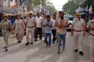 आरोपियों की पैदल परेड के दौरान जुटी भीड़ ने पुलिस जिंदाबाद के नारे लगाए। पुलिस ने सोमवार को दोनों आरोपियों को राजकार्य में बाधा पहुंचाने, पुलिस की वर्दी फाड़ने और हिरासत से आरोपी को छुड़ाने के मामले में गिरफ्तार किया था।