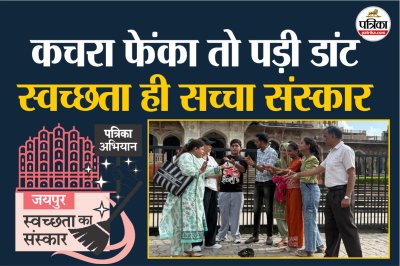 Patrika's cleanliness campaign: जयपुर अल्बर्ट हॉल पर मंगलवार को कुछ ऐसा हुआ कि वहां मौजूद लोग हैरान भी हुए और मुस्कुराए भी। राजस्थान पत्रिका के ‘स्वच्छता का संस्कार’ अभियान के तहत नुक्कड़ नाटक मंचित किया जा रहा था। वहीं एक लड़की फोटो खिंचवा रही थी कि तभी एक कलाकार ने उसके सामने कचरा फेंक दिया। लड़की भड़क उठी और कहा, ‘शर्म नहीं आती? हैरिटेज मॉन्यूमेंट के आगे कचरा फेंक रहे हो, यहां तो कचरा पात्र भी हैं।’ कलाकार ने तर्क दिया कि कचरा पहले से पड़ा है, लेकिन लड़की के ग्रुप ने दबाव बनाया,‘उठाइए और डालिए डस्टबिन में।’ तभी कलाकार ने खुलासा किया कचरा फेंकना तो नाटक का हिस्सा है। इसके बाद सभी मुस्कुरा उठे और कचरा उठा कर डस्टबिन में डाला।