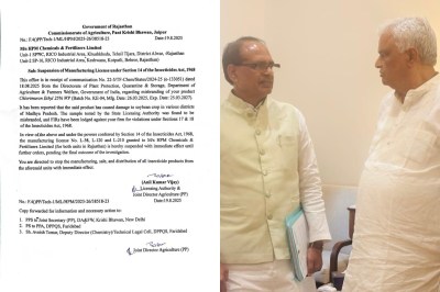 किरोड़ी लाल मीणा ने बताया कि कहा कि केन्द्रीय कृषि मंत्री शिवराज सिंह चोहान के निर्देशों पर कीटनाशक बनाने वाली कंपनी के खिलाफ हुई कार्रवाई। किरोड़ी लाल मीणा ने बताया कि राजस्थान की HPM केमिकल्स एंड फर्टिलाइजर्स लिमिटेड कंपनी का लाइसेंस किया गया रद्द।