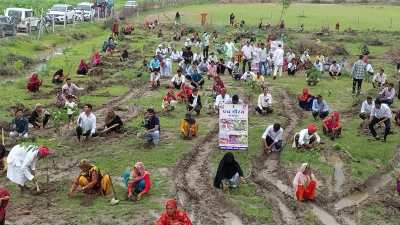 Jaipur Plantation Record: हरियाली तीज पर जयपुर जिला प्रशासन ने पर्यावरण संरक्षण की दिशा में ऐतिहासिक उपलब्धि हासिल करते हुए पूरे राजय में एक नई मिसाल कायम की है। फोटो-पत्रिका।