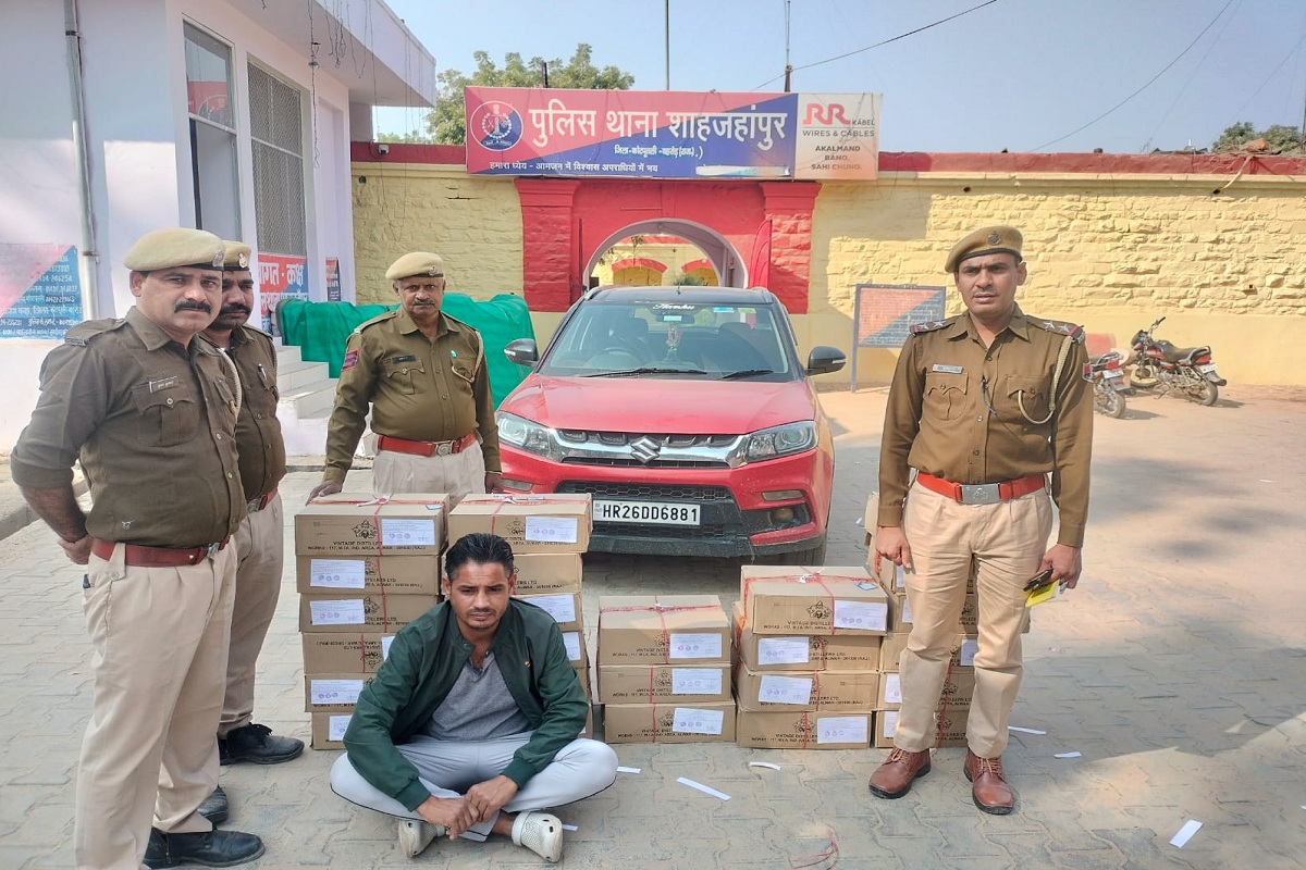 जिले के शाहजहांपुर थाना क्षेत्र में पुलिस ने अवैध शराब तस्करी के खिलाफ मुखबिर की सूचना पर कार्रवाई करते हुए दौलत सिंह नामक व्यक्ति को ब्रेजा कार (HR26-DD-6881) में अवैध रूप से देशी शराब की 25 पेटियां ले जाते हुए गिरफ्तार किया है।
