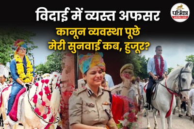 जहां एक ओर आमजन अपराध और कानून-व्यवस्था को लेकर चिंतित हैं। वहीं, पुलिस अधिकारी बैंड-बाजे और घोड़े-बग्घियों में मशगूल दिखाई दे रहे हैं। भरतपुर में एसपी मृदुल कच्छावा को फूलों की माला पहनाकर, बैंड-बाजे के साथ घोड़े पर बिठाकर शाही अंदाज में पुलिस लाइन से विदा किया गया।