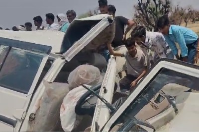 Rajasthan road accident : हादसे के बाद हाइवे पर जाम लग गया। सड़क के दोनों ओर एक किमी तक वाहनों की कतार लग गई।