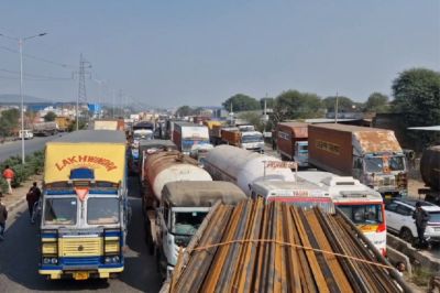 Jaipur Road Accident: राजधानी जयपुर में दिल्ली-अजमेर हाइवे पर 14 नंबर के पास आज एक कंटेनर सड़क किनारे खड़े ट्रक में जा घुसा। हादसे के बाद गुस्साए ट्रक चालकों ने हाइवे पर जाम लगा दिया।