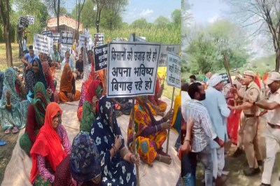 जयपुर-सीकर रोड पर सरकार द्वारा अवाप्त की गई 1350 बीघा कृषि भूमि पर बसाई जाने वाली नींदड़ आवासीय योजना को निरस्त करने की मांग को लेकर चल रहे धरने के दौरान शनिवार को ग्रामीणों और पुलिस के बीच झड़प हो गई। ग्रामीणों का आरोप है कि पुलिस ने लाठी के दम पर धरनास्थल खाली कराने की कोशिश की। ग्रामीणों ने पुलिस पर लाठीचार्ज का भी आरोप लगाया है। वहीं कई ग्रामीणों को हिरासत में लिए जाने की भी सूचना है।