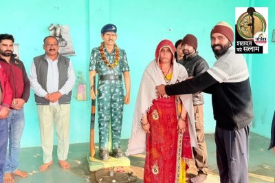 Shahadat Ko Salam: राजस्थान पत्रिका की ओर से शहादत को सलाम अभियान के तहत सुराणा स्थित शहीद राजेश कुमार जाट स्मारक पर वीरांगना हंसा देवी व परिजन का माल्यार्पण व शॉल ओढ़ाकर सम्मान किया गया।