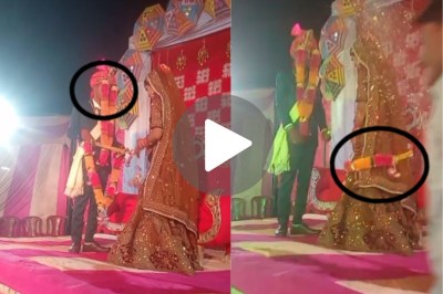 इसे देखकर आपकी हंसी फूट पड़ेगी। लेकिन इसके आगे जो हुआ उसे देखकर तो आप लोटपोट ही हो जाएंगे। दूल्हे के साफे पर ही यह वरमाला अटकी रहती है। अब बारी आती है दूल्हे के माला पहनाने की। शायद दूल्हा दुल्हन की हरकत से गुस्से में आ गया होगा। तभी तो वह दुल्हन के गले में इस तरह से वरमाला डालता है कि माला दुल्हन के गले में जाने की जगह नीचे जाकर घुटनों पर अटक जाती है। इस वीडियो को देखने वाले अपनी हंसी रोक नहीं पा रहे।