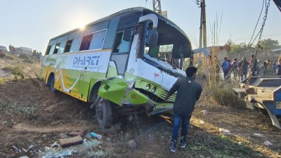 जयपुर। चौमूं शहर के जयपुर-सीकर हाईवे पर स्थित वीर हनुमान मार्ग पुलिया के पास बुधवार सुबह अनियंत्रित होकर एक स्कूल बस पलट गई। बस के नीचे दबने से एक छात्रा की मौत हो गई और 10 बच्चे गंभीर रूप से घायल हो गए। हादसे के बाद मौके पर चीख पुकार मच गई। घायलों का चौमूं शहर के अस्पताल में उपचार चल रहा है। घटना के बाद मौके से ड्राइवर फरार हो गया। पुलिस ने घटनास्थल का मौका मुआयना किया।