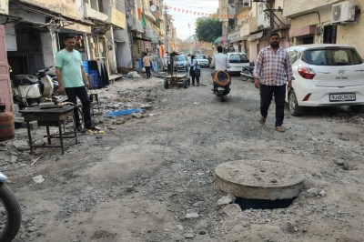 जयपुर. परकोटा क्षेत्र के बाबा हरिश्चंद्र मार्ग के एक हिस्से को सार्वजनिक निर्माण विभाग (पीडब्ल्यूडी) ने खोदकर छोड़ दिया है। पिछले 20 दिनों से स्थानीय लोग और राहगीर परेशान हैं। त्योहरी सीजन के कारण बाजार में आवाजाही भी बढ़ गई है, जिससे करीब 200 मीटर के इस खुदे हुए टुकड़े ने लोगों की मुश्किलें और बढ़ा दी हैं। विभाग के अभियंता इस समस्या पर ध्यान देने को तैयार नहीं हैं। जबकि, सड़क पर सीवर के कई ढक्कन खुले पड़े हैं, जिनसे हादसे का डर बना हुआ है।