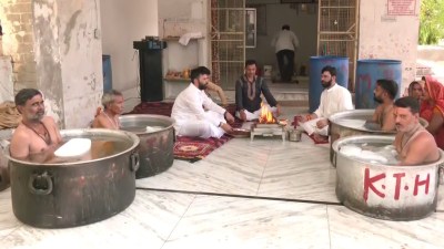 बर्फ की सिल्लियों के बीच ठंडे-ठंडे पानी में विराजकर आराधना करने का ये वीडियो जयपुर का है.. जहां गर्मी और सूखे की मार से राहत के लिए एक महायज्ञ का आयोजन किया गया। इस यज्ञ में संत-महात्माओं और ब्राह्मणों ने भाग लिया। खास बात ये रही कि ये यज्ञ जल साधना के साथ किया गया, यानी सभी आचार्य, संत और ब्राह्मण पानी में बैठकर मंत्रोच्चार और आहुतियां दे रहे थे। यह यज्ञ शुक्ल यजुर्वेद और सामवेद के मंत्रों से किया गया, जिसका मकसद इंद्रदेव को प्रसन्न करना और अच्छी बारिश की कामना करना है।