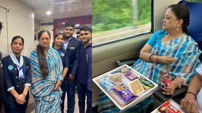 Vasundhara Raje In Vande Bharat Train : राजस्थान की पूर्व सीएम वसुंधरा राजे ने जयपुर से उदयपुर तक का सफर वंदे भारत ट्रेन से तय किया।