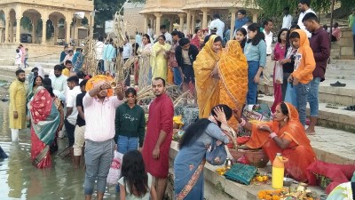 आस्था और श्रद्धा के सागर में डूबा जैसलमेर मंगलवार सुबह छठ महापर्व की भक्ति में सराबोर नजर आया। ऐतिहासिक गड़ीसर तालाब का सौन्दर्य उस समय और निखर गया, जब उगते सूर्य को छठव्रतियों ने दूध व गंगाजल से अर्घ्य अर्पित किया। व्रतियों ने आरोग्य, सुख और समृद्धि की कामना के साथ 36 घंटे का निर्जला उपवास पूर्ण किया।