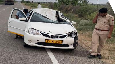 पोकरण क्षेत्र के खेतोलाई गांव के पास शनिवार को तड़के एक कार ऊंट से टकरा गई।