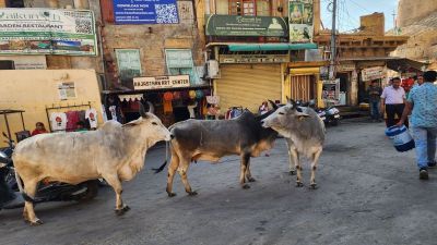 जैसलमेर शहर के हृदय स्थल गोपा चौक और आसपास के क्षेत्रों में इन दिनों आवारा पशुओं की स्वच्छन्दता से हर कोई परेशान है। सुबह हो या शाम… आवारा पशु झुंड में देखे जा सकते हैं, जिससे स्थानीय लोग और पर्यटक परेशान हैं।शहर के गोपा चौक, सदर बाजार, जिंदानी चौकी और प्रमुख पर्यटन स्थलों पर यह समस्या लंबे समय से जस की तस बनी हुई है।