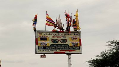 पोकरण क्षेत्र में इन दिनों सड़क किनारे लगे पेड़ पौधों के साथ हॉर्डिंग्स, निर्मित व खंडहर भवनों, पानी की टंकियों, ट्री-गार्ड आदि पर ध्वजाओं का अंबार लगा हुआ है।