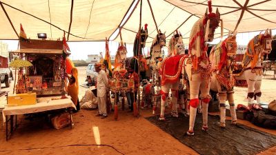 जोधपुर से पदयात्री संघों के साथ ही कपड़े के घोड़े लेकर श्रद्धालु रवाना होते है। साथ ही एक वाहन में बाबा रामदेव का मंदिर सजाया होता है, जिसमें प्रतिदिन सुबह व शाम पूजा-अर्चना की जाती है। कपड़े के घोड़ों को पड़ाव स्थल पर मंदिर के साथ सजाकर रखा जाता है। कस्बे के राउमावि मैदान में ये घोड़े आकर्षण का केन्द्र रहे। इसी प्रकार गुरुवार को दोपहर दो बड़े कपड़े के घोड़े लेकर पदयात्री पोकरण पहुंचे। इन घोड़ों की ऊंचाई 15 से 17 फीट है और इनका वजन एक क्विंटल से भी अधिक है। इन घोड़ों को भी राउमावि मैदान में पड़ाव स्थल पर लाकर रखा गया, जो आकर्षण का केन्द्र बन गए।