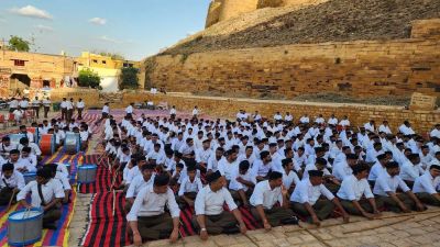 जैसलमेर नगर की शिव शाखा, बस्ती में राष्ट्रीय स्वयंसेवक संघ की ओर से विजयदशमी पर्व के उपलक्ष्य में पथ संचलन एवं शस्त्र पूजन कार्यक्रम का आयोजन किया गया। नगर के विभिन्न क्षेत्रों से सैकड़ों स्वयंसेवकों ने उत्साहपूर्वक भाग लिया। मुख्य वक्ता जिला सेवा प्रमुख राकेश जोशी ने कहा कि संघ का शताब्दी वर्ष केवल एक उत्सव नहीं, बल्कि समाज में सकारात्मक परिवर्तन का संकल्प है। कार्यक्रम के मुख्य अतिथि के रूप में भंवर दान मांडवा ने सांस्कृतिक चेतना और मातृभूमि के प्रति समर्पण की भावना को अभिव्यक्त किया। शस्त्र पूजन के पश्चात पथ संचलन नगर के प्रमुख मार्गों से होकर गुजरा।
