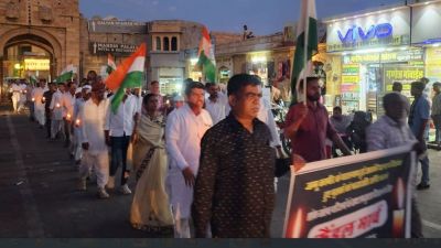 कश्मीर के पहलगाम में आतकी हमले में 28 निर्दोष पर्यटकों की निर्मम हत्या के विरोध में जिला कांग्रेस कमेटी ने शनिवार शाम कैंडल मार्च निकालकर श्रद्धांजलि अर्पित की। कार्यकर्ताओं ने दिवंगत आत्माओं की शांति और घायलों के शीघ्र स्वस्थ होने की कामना करते हुए आतंक के खिलाफ देशव्यापी एकजुटता का संदेश दिया। कैंडल मार्च का नेतृत्व जिला कांग्रेस अध्यक्ष उम्मेदसिंह तंवर, जिला प्रभारी चिरंजीलाल वर्मा और पूर्व विधायक रूपाराम धनदेव ने किया। मार्च शहर के गोपा चौक स्थित सोनार दुर्ग के मुख्य द्वार से प्रारंभ होकर सदर बाजार, गांधी चौक और गुलासतला रोड से होता हुआ गांधी दर्शन परिसर तक पहुंचा। श्रद्धांजलि सभा में बड़ी संख्या में कार्यकर्ता मौन मुद्रा में शामिल हुए।