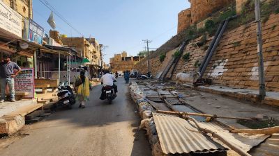 यहां दिन में लोग खौफजदा रहते हैं, वहीं रात में आशंका के साथ सोते हैं, हर घड़ी उन्हें अनहोनी का भय सताता है, अव्यवस्थाओं का दंश तो वे रोज झेलते ही है…. यह सूरते हाल है जैसलमेर के शिव मार्ग का, जहां बारिश की दिनों में सोनार दुर्ग की दीवार ढहने देने से यह रास्ता प्रभावित हो रहा है। सोनार दुर्ग की बुर्ज से लगती दीवार गिरने से शिव मार्ग की स्थिति अब भी गंभीर बनी हुई है। सुरक्षा इंतजामों की कमी के कारण दुर्घटनाओं का खतरा बढ़ रहा है। शहर के शिव मार्ग पर सोनार दुर्ग से जुड़ी ऐतिहासिक दीवार के गिरने के बाद से मार्ग की व्यवस्था अब तक पटरी पर नहीं लौट सकी है। दीवार गिरने के बाद उक्त मार्ग को अस्थायी रूप से बंद कर दिया था और कुछ हिस्सा पैदल और दुपहिया वाहनों के लिए खोल दिया गया। अभी भी दीवार की मरम्मत का काम रुका हुआ है।