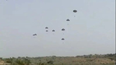 दक्षिण-पश्चिमी क्षेत्र के एयरबेस पर इंडियन एयरफोर्स और भारतीय सेना के स्पेशल फोर्सेज ने 12 हजार फीट की ऊंचाई से पैराशूटिंग का प्रदर्शन किया।