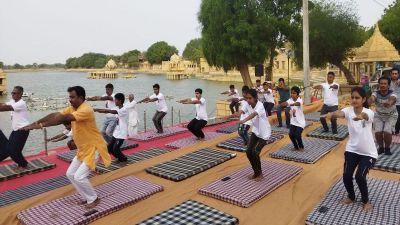 सरहद से सटे रेगिस्तानी जिले में शनिवार सुबह एक अद्भुत दृश्य देखने को मिला, जब सूरज की पहली किरणों के साथ हजारों लोगों ने एक साथ योगाभ्यास कर अंतरराष्ट्रीय योग दिवस की शुरुआत की।