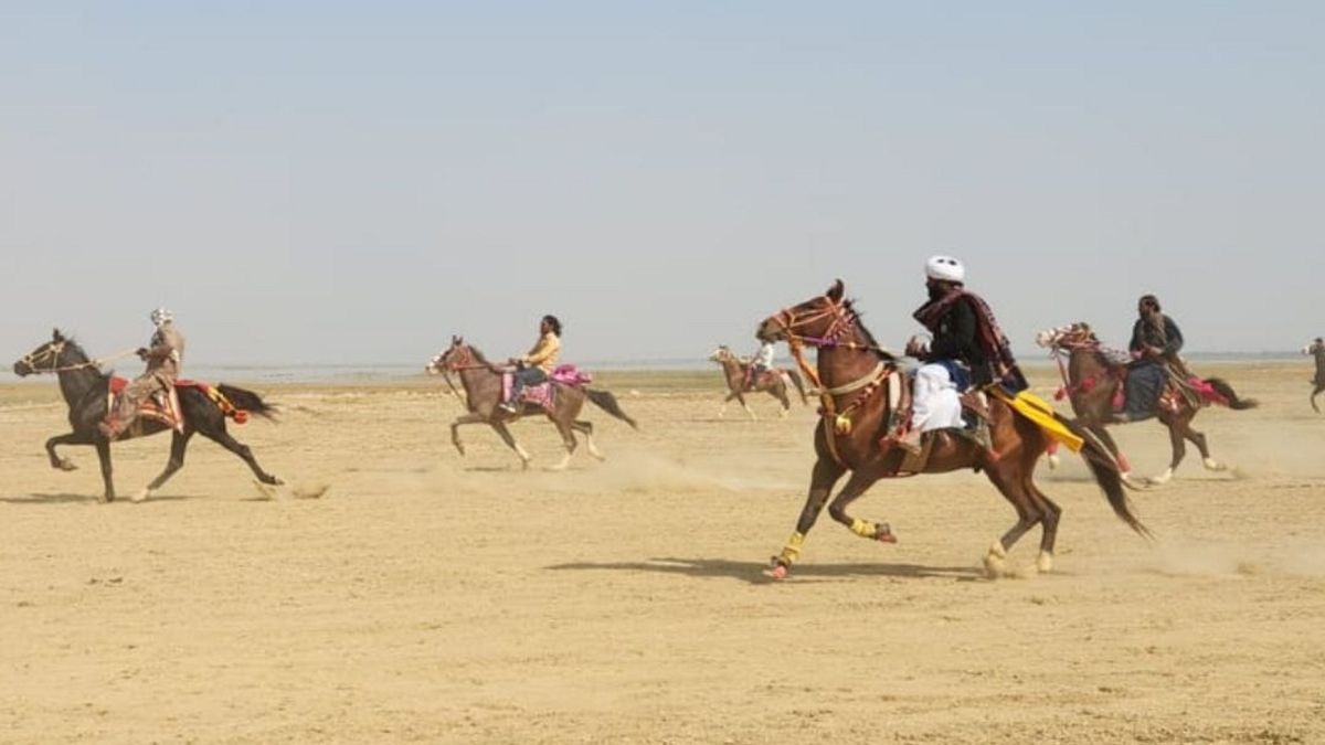 मरु-महोत्सव के कार्यक्रमों की कड़ी में बुधवार को लाणेला गांव के भू-भाग मे फैले रण क्षेत्र में घुड़ दौड़ प्रतियोगिता का आयोजन हुआ।