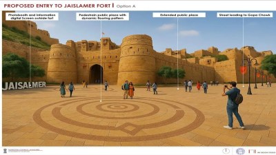 विश्वप्रसिद्ध जैसलमेर के ऐतिहासिक सोनार दुर्ग के चारों ओर अब एक आकर्षक हेरिटेज वॉकवे बनेगा।