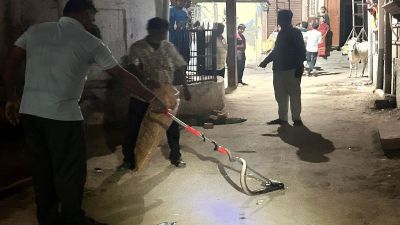 पोकरण कस्बे के वार्ड संख्या छह सोनारों की गली में गुरुवार देर शाम निकले कोबरा सांप से हड़कंप मच गया। हादसे करीब दो घंटे की मशक्कत कर रेस्क्यु किया गया। वार्ड संख्या छह सोनारों की गली में गुरुवार की देर शाम करीब साढ़े सात बजे एक कोबरा सांप नजर आया, जो यहां निर्मित एक नाली में जाकर बैठ गया। आस पड़ौस में निवास कर रहे लोग एकत्रित हो गए और एकबारगी हड़कंप मच गया। लोगों ने सांप को भगाने का प्रयास किया, लेकिन सफल नहीं हुए। नगरपालिका नेता प्रतिपक्ष नारायण रंगा ने उपखंड अधिकारी से बात की। इसके बाद वन विभाग के कार्मिक मूलसिंह मौके पर पहुंचे। उन्होंने लोगों की मदद से रेस्क्यू कर सांप को पकड़ा, जिसके बाद लोगों ने राहत की सांस ली।
