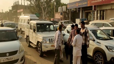 पोकरण कस्बे में पर्यटकों की आवक गुरुवार को चरम पर रही। गुरुवार सुबह जोधपुर रोड पर दो गाडिय़ां टकरा गई्, जिसके बाद करीब आधे घंटे तक तनातनी चली।