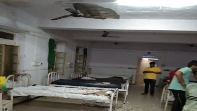 कस्बे में गुरुवार को दोपहर करीब 2 घंटे तक मूसलाधार बारिश हुई। राजकीय अस्पताल के मेल वार्ड में कुछ मरीज भर्ती थे। रात करीब साढ़े 10 बजे छत का प्लास्टर भर-भराकर गिर गया। गनीमत रही कि प्लास्टर पहले पंखे से टकराया। जिससे सीमेंट के टुकड़े बिखर गए और नीचे सो रहे मरीज के पैरों के पास एवं जमीन पर गिरे। मरीज के चपेट में नहीं आने से बड़ा हादसा टल गया।