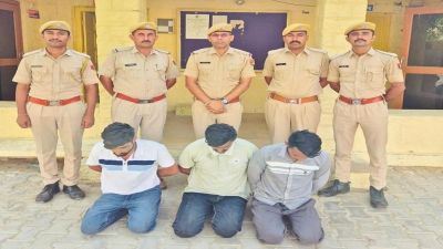 शराब दुकान के सेल्समैन से मारपीट कर गोदाम में तोड़फोड़ और घटना का वीडियो वायरल करने के मामले में सांगड़ थाना पुलिस ने तीन आरोपियों को गिरफ्तार किया है। पुलिस ने कोर्ट में पेश कर आरोपियों को रिमांड पर लिया है। गत.24 जून को पाबनासर शराब दुकान पर तैनात सेल्समैन कंवरसिंह पुत्र सुगनसिंह निवासी जेतसर ने शिकायत दी थी कि तीन युवक दुकान पर आए और शराब व पैसे की मांग करने लगे। मना करने पर मारपीट की और गोदाम में तोड़फोड़ कर घटना का वीडियो भी बनाया। सांगड़ थाना पुलिस ने मामला दर्ज कर जांच शुरू की। पुलिस अधीक्षक सुधीर चौधरी के निर्देशन में, अतिरिक्त पुलिस अधीक्षक कैलाशदान जुगतावत और वृताधिकारी रूपसिंह ईन्दा के सुपरविजन में थानाधिकारी बाबूराम के नेतृत्व में टीम गठित कर कार्रवाई की गई। टीम ने आरोपी मोहनसिंह पुत्र फतेहसिंह निवासी धारवी कला, गोपालसिंह पुत्र हिम्मतसिंह और अशोकदान पुत्र हिंगलाजदान निवासी मेहरेरी को दस्तयाब कर पूछताछ के बाद गिरफ्तार किया। आरोपियों को न्यायालय में पेश कर पीसी रिमांड पर लिया गया है। मामले में आगे की जांच जारी है।