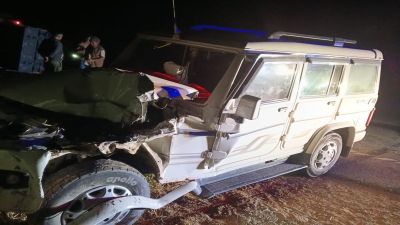 पोकरण क्षेत्र के खेतोलाई गांव के पास शनिवार रात एक ट्रैक्टर व जीप की भिड़ंत में 6 जने घायल हो गए। घायलों को पोकरण के राजकीय अस्पताल लाकर भर्ती करवाया गया। जानकारी के अनुसार जीप में सवार कुछ लोग जैसलमेर से पोकरण की तरफ आ रहे थे। इस दौरान रात करीब साढ़े 7 बजे खेतोलाई गांव के पास सामने से आ रहे एक ट्रैक्टर से उनकी भिड़ंत हो गई। हादसे में जीप पूरी तरह से क्षतिग्रस्त हो गई। उसमें सवार केरु निवासी अनची (45) पत्नी रुपनाथ, भूतनाथ (60) पुत्र रामनाथ, खेतनाथ (28) पुत्र स्वरूप, स्वरूपनाथ (47) पुत्र लूमनाथ, माया (3) पुत्री खेतनाथ व कविता (5) पुत्री खेतनाथ घायल हो गए। उन्हें निजी वाहनों से पोकरण के राजकीय अस्पताल लाकर भर्ती करवाया गया। यहां देर रात तक उनका उपचार जारी था। सूचना पर पोकरण पुलिस थाने के सहायक उप निरीक्षक बस्ताराम पुलिस बल के साथ अस्पताल पहुंचे और घटना की जानकारी ली। हादसे की जानकारी मिलने पर अस्पताल में लोगों की भीड़ उमड़ पड़ी। लोगों ने घायलों के उपचार में मदद की।