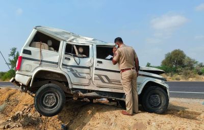जैसलमेर जिला मुख्यालय से करीब 15 किलोमीटर की दूरी पर रविवार सुबह घटित सडक़ हादसे में एक युवक की मौत हो गई जबकि 4 अन्य घायल हो गए। घायलों को उपचार के लिए जिला अस्पताल लाया गया। जहां सभी की हालत खतरे से बाहर है वहीं मृतक युवक का पोस्टमार्टम करवाने के बाद शव सुपुर्द कर दिया गया। सदर थाना पुलिस से मिली जानकारी के अनुसार प्रथम दृष्टया यह हादसा वाहन के पलटी खाने से हुआ। तेज गति से वाहन अनियंत्रित होकर पलट गया और उसने 3-4 पलटियां खाई। इस हादसे में आंध्र प्रदेश निवासी नीलेश (22) की मौत हो गई। वहीं वाहन में सवार सोमेश, नागेन्द्र, स्पंदन रेड्डी, साही कुमार घायल हो गए। आसपास के लोगों ने गाड़ी में फंसे लोगों को बाहर निकाला। जानकारी के अनुसार वाहन में सवार लोग पचपदरा रिफाइनरी में कार्यरत इंजीनियर हैं। वे रविवार का अवकाश होने के कारण जैसलमेर से लौंगेवाला जा रहे थे। घटना की जानकारी मिलने पर पुलिस दल मौके पर पहुंचा। वहीं घायलों को एम्बुलेंस के जरिए अस्पताल लाया गया। घायलों की कुशलक्षेम पूछने जैसलमेर विधायक छोटूसिंह भाटी भी अस्पताल पहुंचे और चिकित्साकर्मियों से उनके उपचार व्यवस्था के बारे में जानकारी ली। सदर थानाधिकारी बगड़ूराम, एएसआई मुकेश बीरा मय जाब्ता ने मौके पर जाकर हालात का जायजा लिया और अस्पताल में अग्रिम कार्रवाई करवाई।