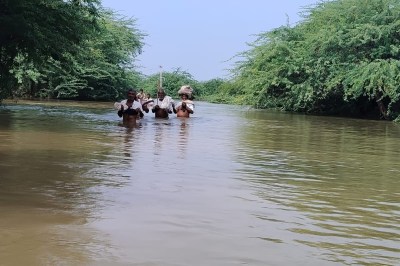 इसी प्रकार सुराचंद ग्राम पंचायत का सुजानपुरा गांव भी चारों ओर से लूनी नदी के पानी से घिरा हुआ है। यहां के लोग बाहर जाने के लिए पानी में से तैरकर अपनी जान जोखिम में डाल रहे हैं। ग्रामीणों ने बताया कि पिछली बार लूनी नदी में पानी भरने पर राजस्थान पत्रिका में खबर प्रकाशित होने के बाद प्रशासन हरकत में आया था और पानी उतरने के बाद एसडीआरएफ की टीम गांव पहुंची थी। अब दोबारा वही स्थिति बन चुकी है, लेकिन अभी तक कोई बचाव दल या राहत व्यवस्था नहीं पहुंची है। ग्रामीणों ने जिला प्रशासन से तत्काल राहत और स्थाई समाधान की मांग की है, ताकि बरसात के दिनों में उन्हें हर बार इस तरह की मुसीबत न झेलनी पड़े।