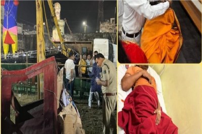 CG News: छत्तीसगढ़ के जांजगीर-चांपा के चांपा में दशहरा महोत्सव के दौरान बड़ा हादसा हो गया। राम-रावण मंचन के दौरान स्काई लिफ्ट में राम, लक्ष्मण, हनुमान जी की वेशभूषा में शामिल लोग धड़ाम से 35 फीट ऊपर से नीचे गिर गए। इस दौरान नीचे बैठे एक दर्शक के दोनों पैर टूट गए। उसकी बेटी को भी गंभीर चोंटे आई।