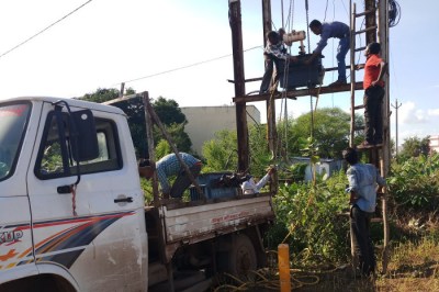 विद्युत मंडल के कर्मचारियों द्वारा विद्युत पोल के नीचे वाले भाग में पेड़ पौधे की छटाई की जा रही है। बिगड़े जंक्शन बॉक्स, कटआउट को ठीक किया जा रहा है।